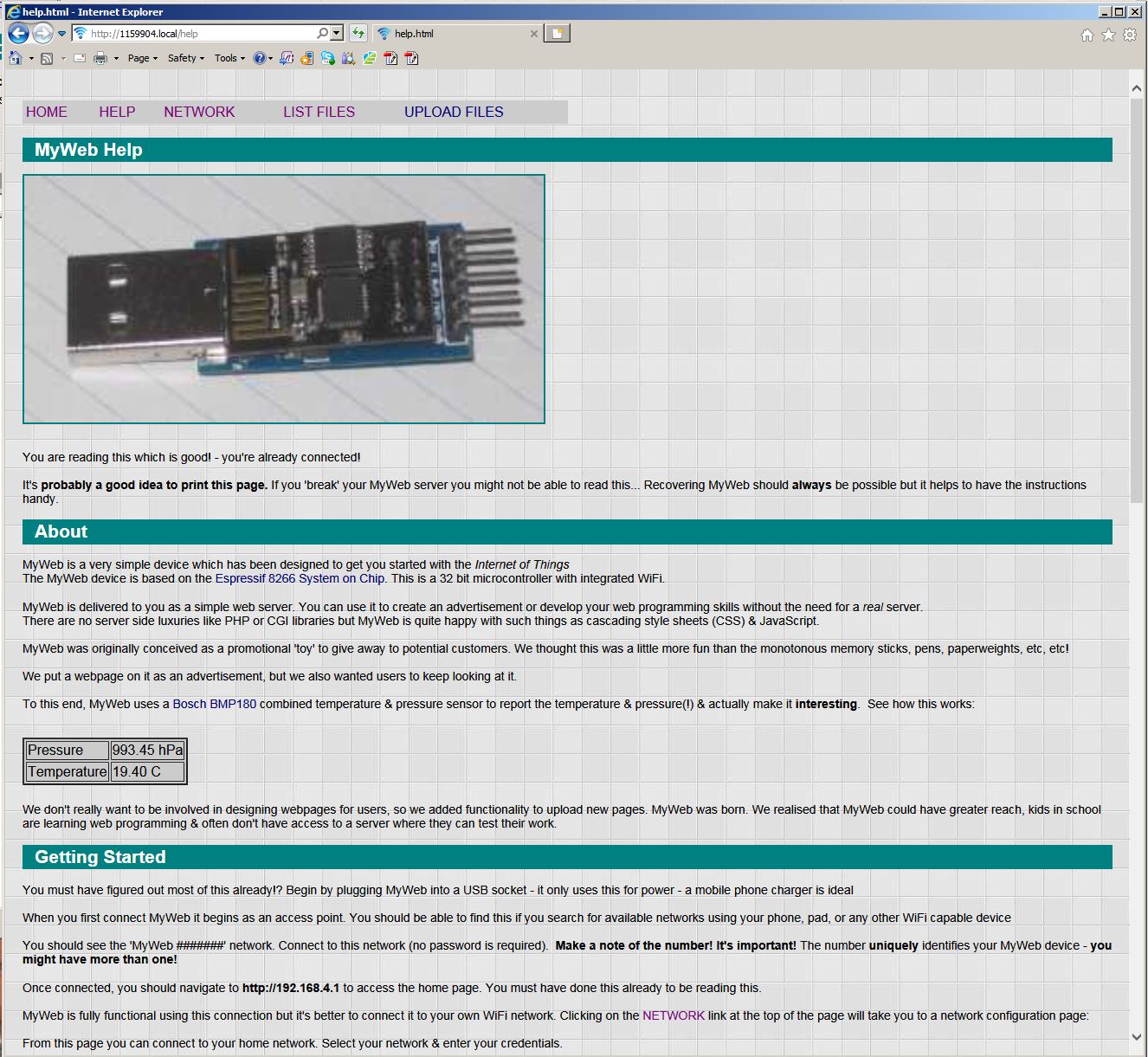 MyWeb uses the common ESP-01 module attached to a carrier board
