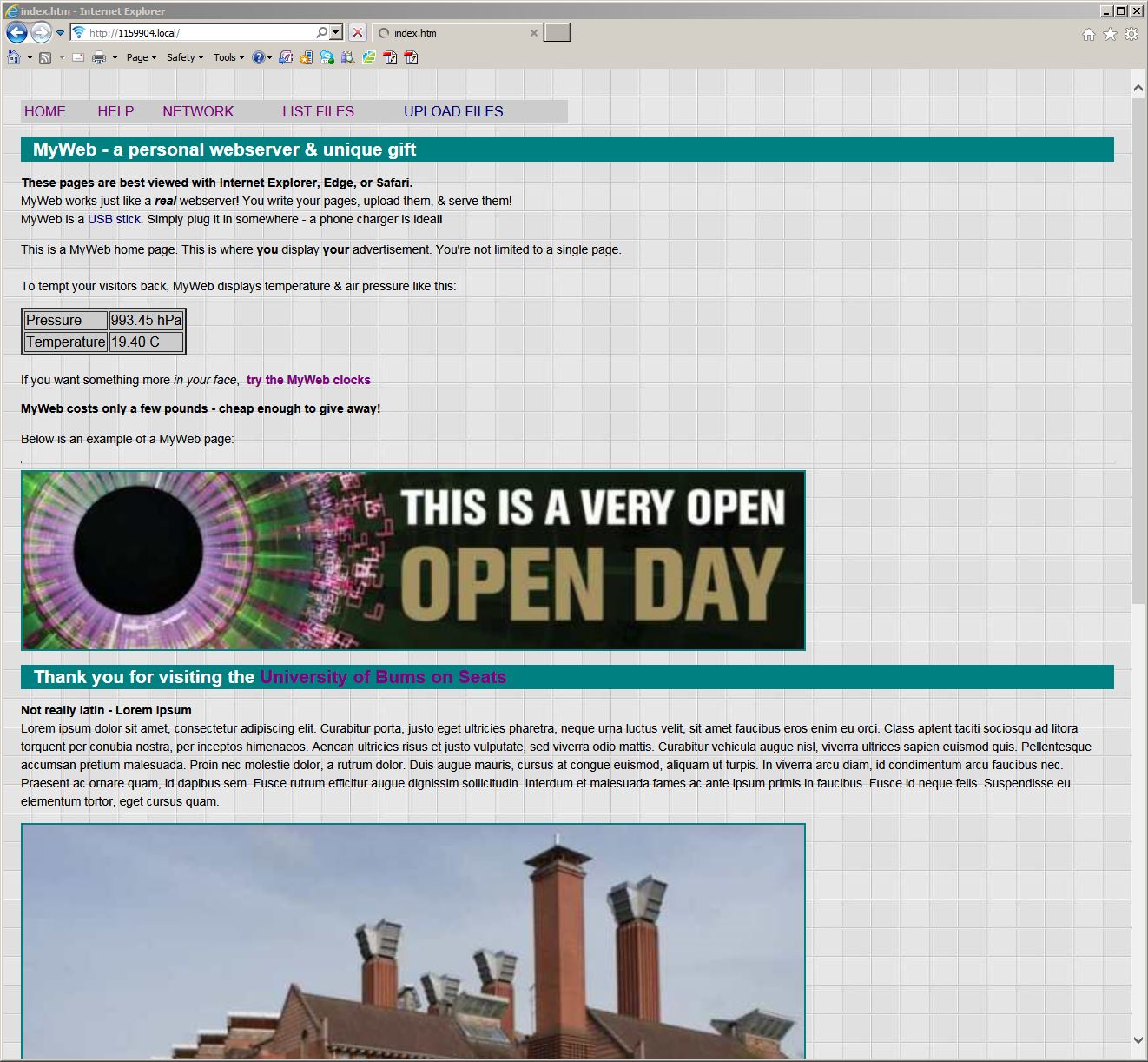 MyWeb can function 'standalone' or connect to your network. MyWeb remembers your